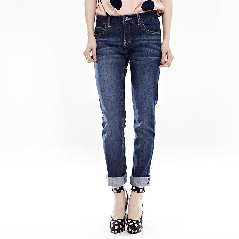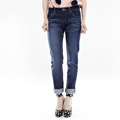 基础百搭修身窄脚牛仔长裤女款VJ295 中蓝色