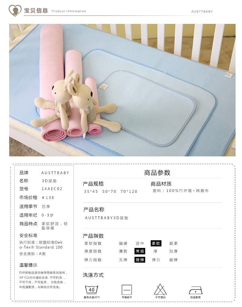 新生婴儿3D隔尿垫竹纤维防水透气 宝宝隔尿垫可洗防皱